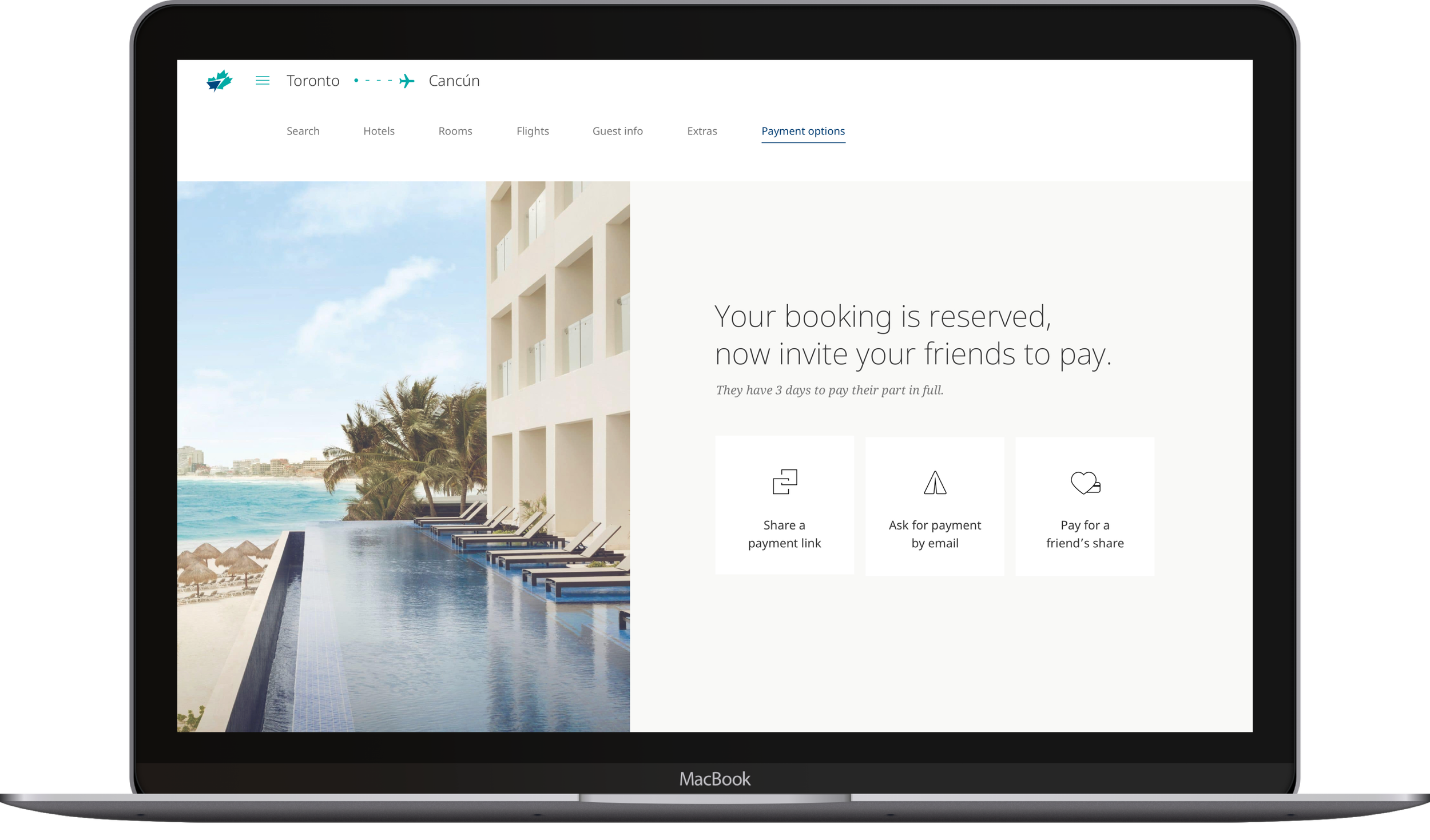 For many customers, a vacation is a luxury that only happens every few years. We wanted to lower the barrier towards taking a vacation by introducing the ability for guests to pay in installments over time or to be able to split payment directly with friends or loved ones so no one has to put up a lump sum upfront.